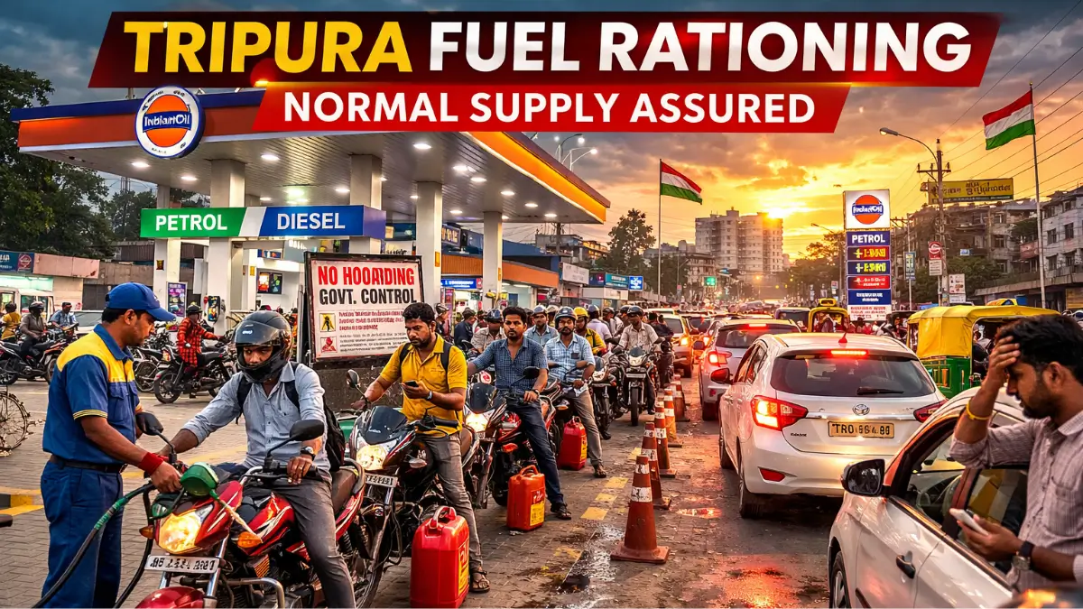 Several petrol pumps in Tripura recently saw long queues of vehicles. Because of this situation, authorities decided to introduce temporary restrictions.